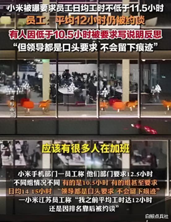 结果呢,小米上海的员工证实了:我们部门确实要平均11.5小时。早上9点到晚上8点半,雷打不动。