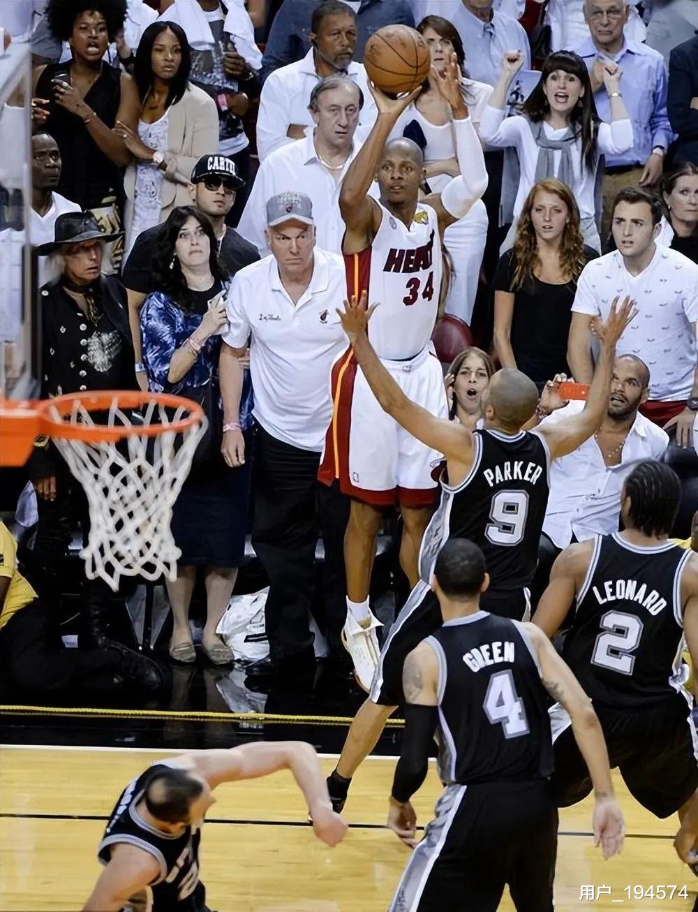 2013年6月19日,NBA总决赛第六场,热火在主场2:3落后马刺。比赛常规时间结束前5.2秒,雷·阿伦在身体失去平衡且有两人防守的前提下投中一记续命三分,这个三分球可谓价值连城,不仅将总决赛拖进了第七场,更是让热火全队士气大振!最终一鼓作气在抢七中击败马刺,成就了热火三巨头的两连冠!可以说,如果没有雷阿伦,热火三巨头的成就,绝不可能像现在的影响力这么巨大!所以,2013年总决赛上的雷·阿伦,或许是对詹姆斯意义极具特殊意义的一位队友!