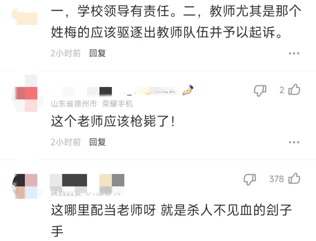 同样这是一起令人痛心和悲愤的事件。学校本应是学生成长的摇篮和心灵的避风港,教师更应是学生的引路人与守护者。然而在这起事件中,老师的行为严重违背了教师的职业道德和职责,对学生造成了极大的身心伤害。