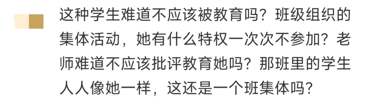 据网上了解,起因是该学校要组织应该朗诵节目,说是会有比较重要的领,导来视察,但是该女生不想参加此朗诵节目,于是跟班主任提前打了招呼。
