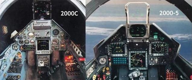法军援助乌克兰的幻影2000-5改型,玻璃座舱前侧安装泰雷兹VEH3020大角度平显和APSI显示器,RDY多普勒雷达能实现同时对24个空中目标扫描,对8个目标追踪,并引导4枚空空导弹攻击。