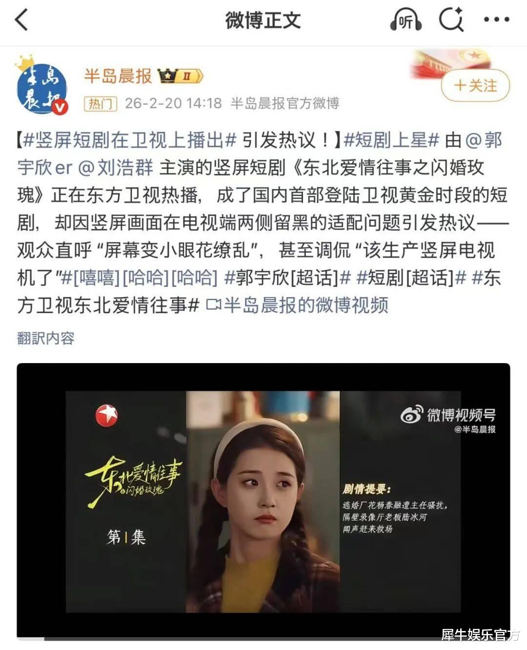 据了解,此次登上电视大屏时,电视台还特意在屏幕两侧增添情节提示与图文引导,以适配竖屏结构,但也因此引发了观众针对画幅适配的热议。不过争议之外,热度丝毫不减。据酷云数据,该作在2月23日黄金时段全部卫视剧集表现中,取得了排名第三的好成绩。