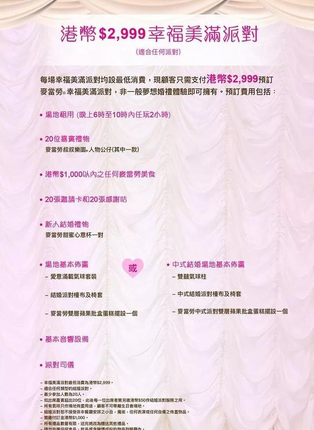 在麦当劳办婚礼需要多少钱?答案是700新币(约人民币3700元)。