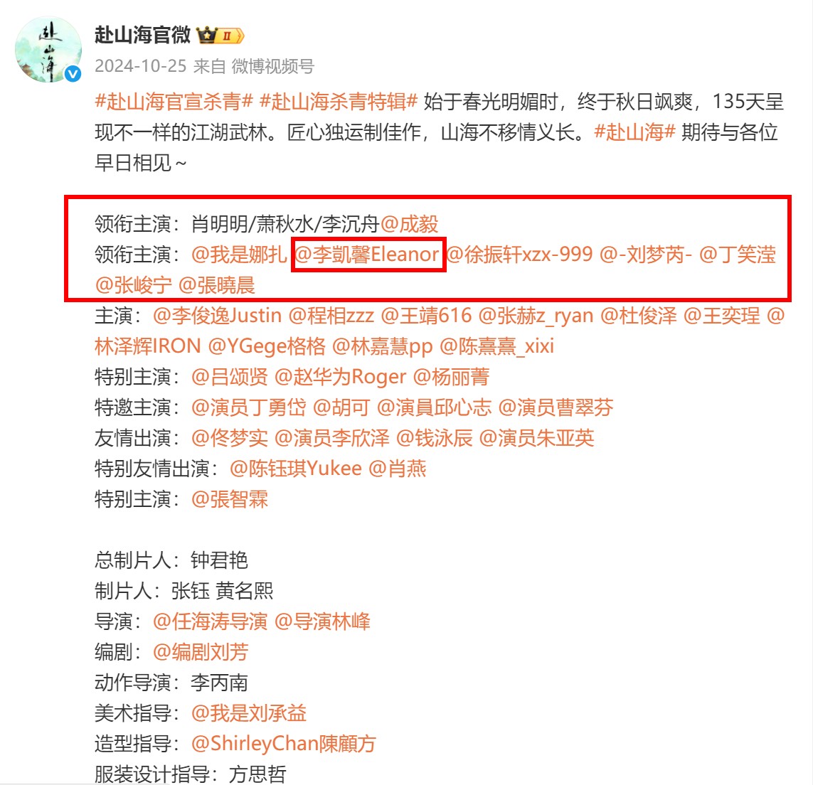 最终包括人民日报、央视新闻在内的官媒纷纷将《赴山海》从早先的宣传中除名,最终也才有了李凯馨方的回应。