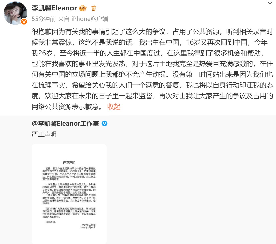 而李凯馨本人也是转发回应,表示听到相关录音令她非常震惊,这绝不是她说的话。
