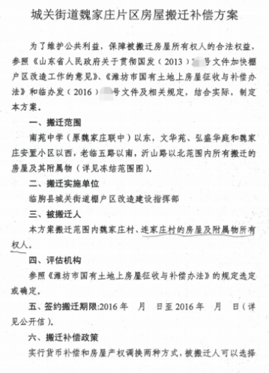 棚改启动,美好生活愿景变生存困境2016年,临朐县城关街道连家庄村纳入棚户区改造范围,按照当时公布的搬迁补偿方案,拆迁实行货币补偿与房屋产权调换两种方式,宅基地住户可置换安置楼并享受相应补贴、奖励。连文娟的父亲名下宅基地成功置换了安置房,然而作为户口未迁出的家庭成员,连文娟却未获得任何形式的补偿。