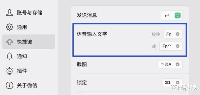 当然,也可以自己在微信设置--快捷键,自定义语音输入文字的快捷键。