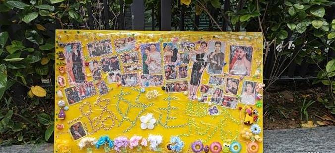 大S住所楼下特设了一面粉丝手工打造的纪念板,板上镌刻着“永别了,但思念常在”的话语,同时汇集了她过往主持《娱乐百分百》的影像以及出演剧作的照片。