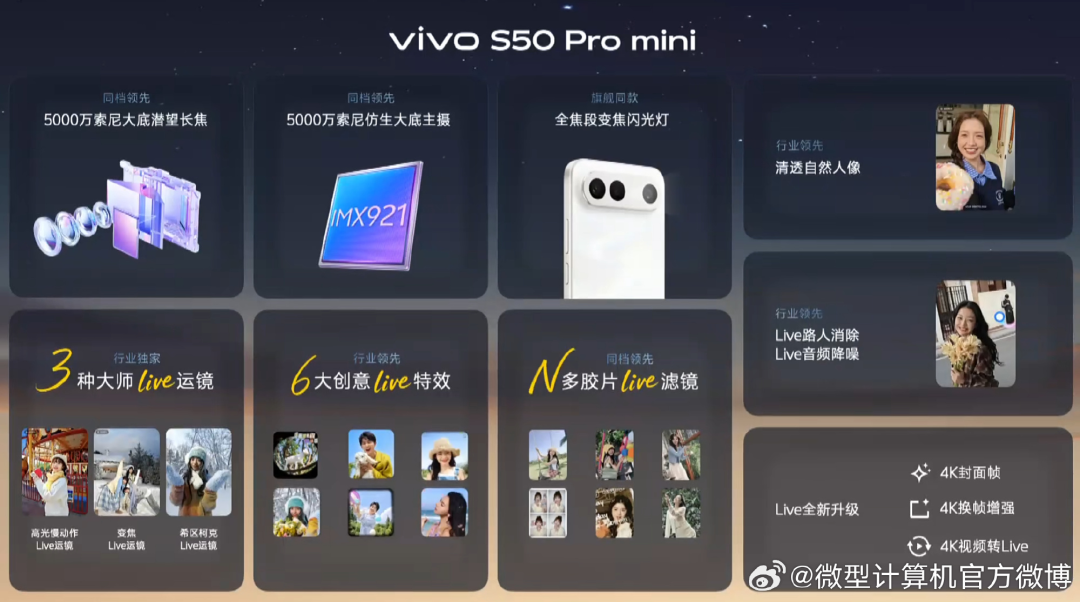 vivo S50 系列以“长焦 Live 神器”为核心,贯通硬件、算法、拍摄与后期的全链路协同,将长焦氛围表达与专业运镜化繁为简,让用户轻松拍出兼具叙事感、氛围感与电影感的 Live 大片。与此同时,三大创意运镜更是对 Live 影像的一次美学重构,将单纯的“动”升维为年轻人热衷的、极具“生命力”的自我表达,引领社交分享迈向更有质感的“新社交影像”时代。这也是 S 系列始终坚持的方向:以技术做“减法”,让表达更“自由”,回应每一个“不被定义”的年轻人。