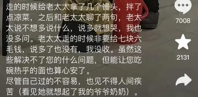 这篇让我深刻感受到,社会的温暖并不只是来自于个别的善举,而是每个人的关注与参与。每一个流浪在外的老人背后,都有一段不为人知的故事,我们不应该视而不见。希望大家能多多关注身边的人,伸出援手,让这个社会变得更加温暖!你怎么看?欢迎在评论区分享你的观点,或者给我点个赞!