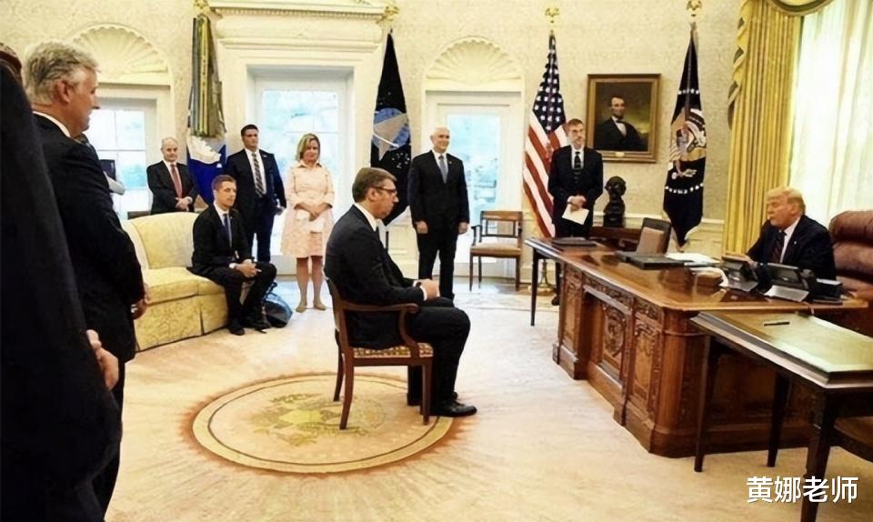 比如,你看,这是2020年9月,美国白宫,小小的椅子上,坐着高大的武契奇。