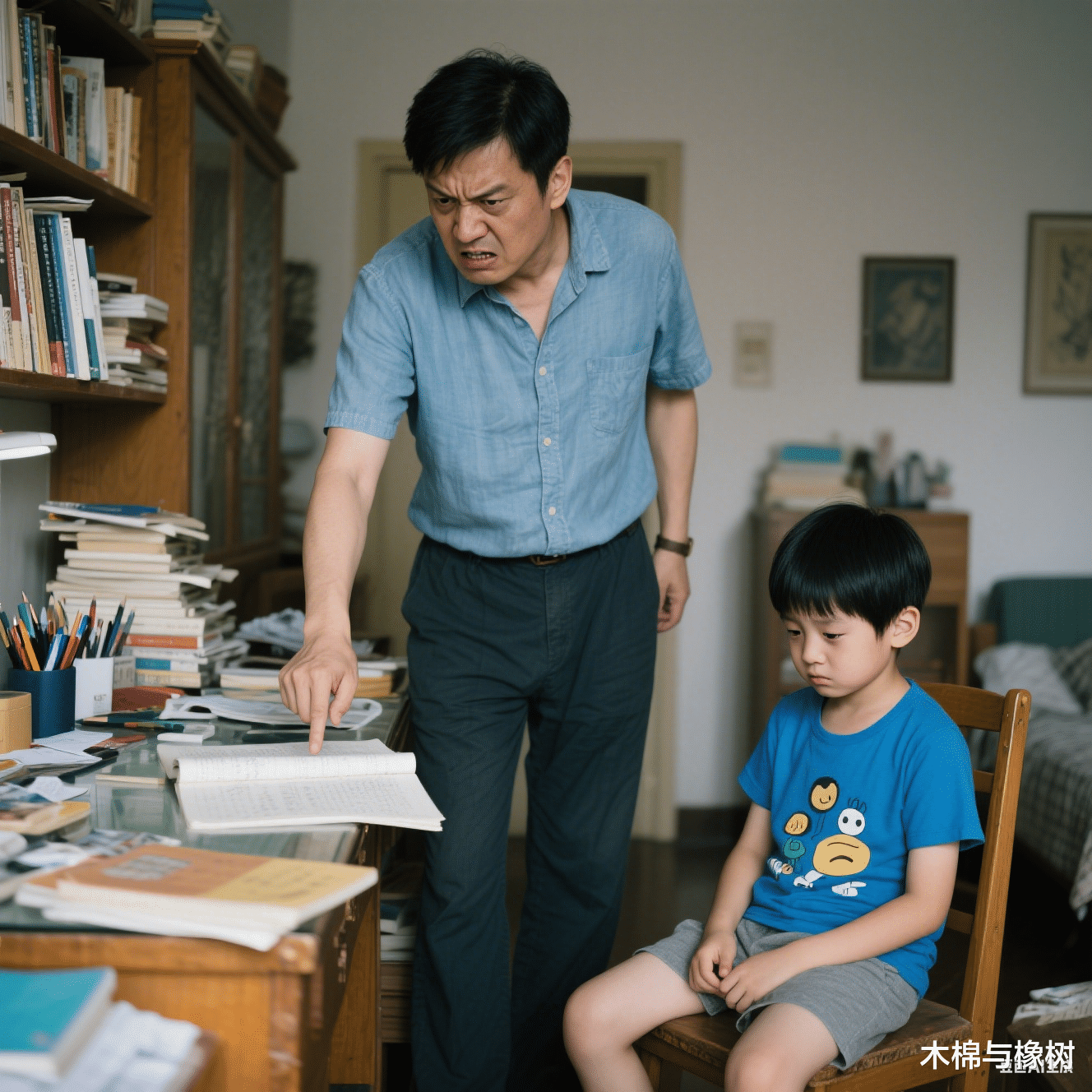 林强接过试卷,看着上面那一个个刺眼的红叉,怒火再也忍不住,“啪” 的一声把试卷拍在桌子上,吼道:“你们两个怎么回事?一个不学习,一个考倒数,你们就不能让我省点心吗?” 他的脸涨得通红,额头上青筋暴起,愤怒地瞪着两个孩子。