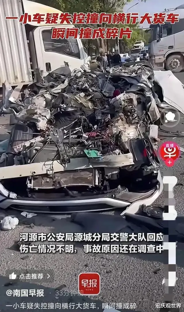 2025年1月3日,广东河源桂山路口发生了一起令人震惊的交通事故。一辆白色SUV在闯红灯后,高速撞上了一辆大货车,导致SUV瞬间“解体”,碎片四散。这起事故不仅引起了广泛关注,也引发了人们对交通安全的深刻反思。