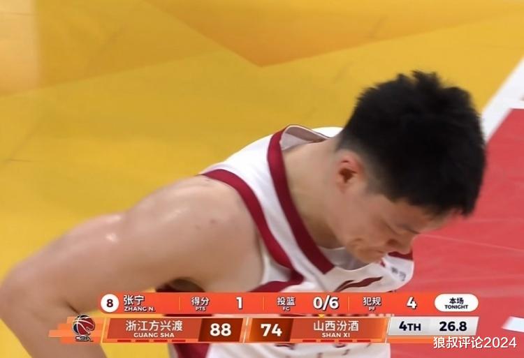 本场比赛,张宁状态迷失,登场20分钟,运动战6中0,罚球2中1,得到1分4次犯规,而上半场登场7分钟累计3次犯规成为张宁被迫长时间休息的重要因素。