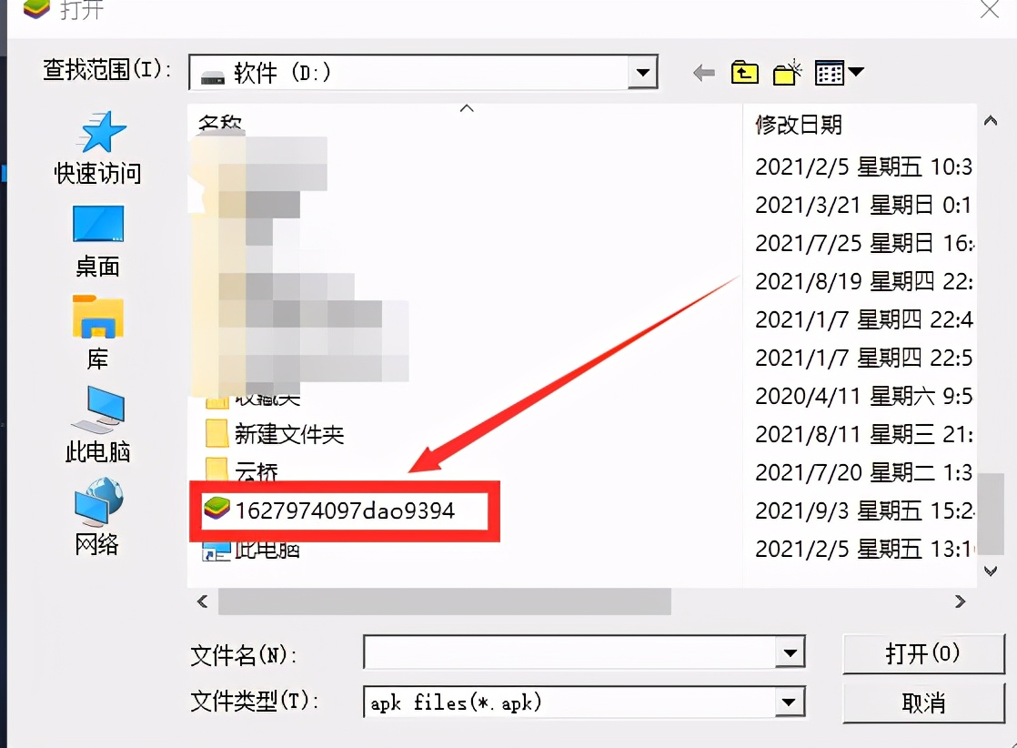 5、点击蓝叠模拟器的安装本地APK,选择下载好的安卓包。
