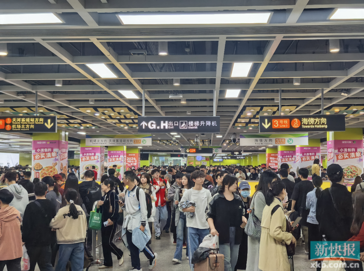 陈春华指出,连续两天刷新的客流记录表现出以下特点:首先枢纽集散功能凸显,交通枢纽站客流规模居首,总进站45.1万人次,较日常增17.5万人次,广州南站以19.1万人次领跑,同比增幅达53%。其次是重点换乘站客流稳固,线网重点换乘站总进站56.0万人次,较日常增13.7万人次,体育西路站以13.9万人次居首,保障换乘出行客流高效周转。