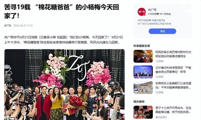 苦寻19载 “棉花糖爸爸”的小杨梅今天回家了!.央广网.2025-04-21