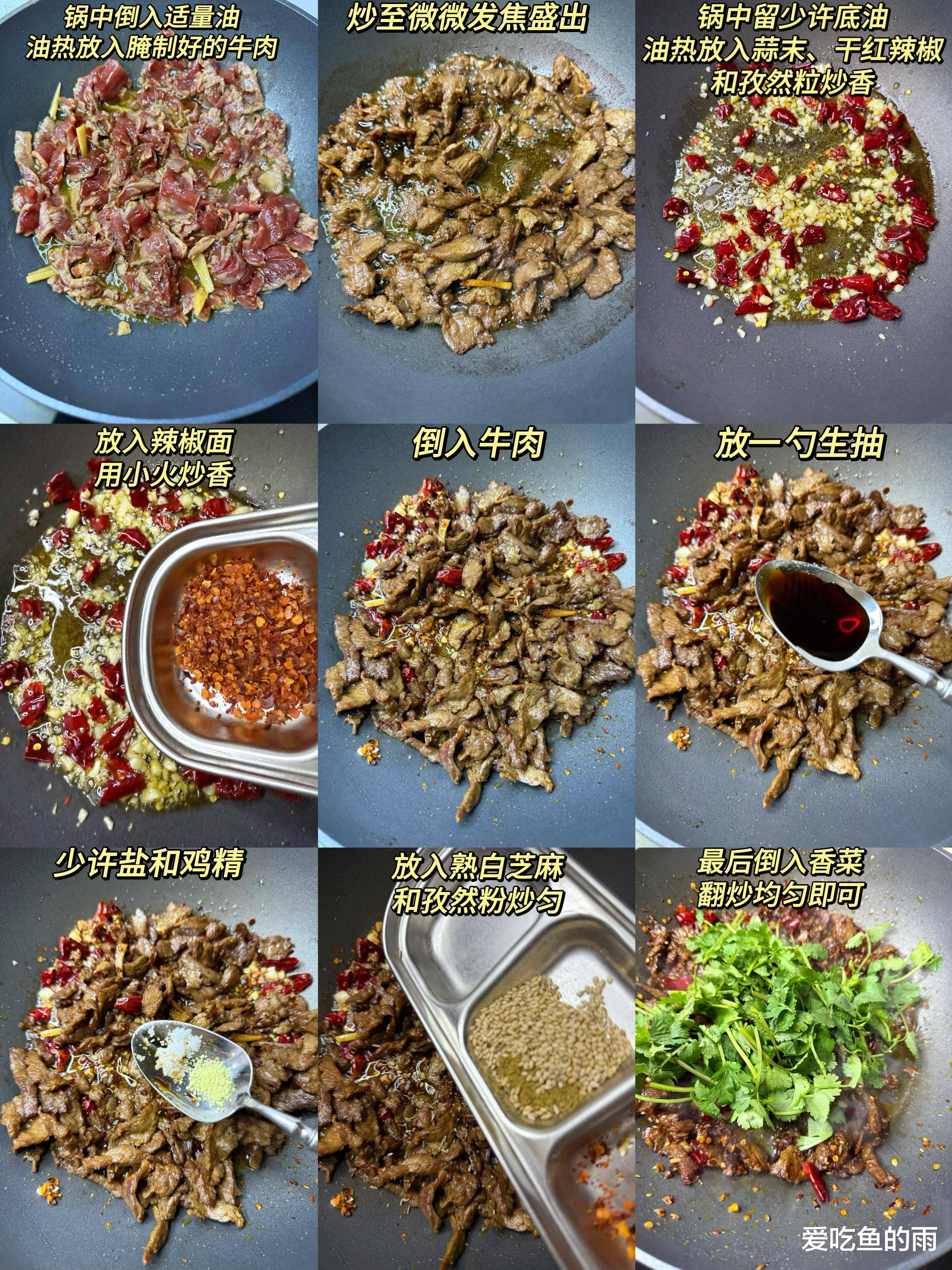 锅铲撞上铁锅,“嚓啦”一声爆出火星!油锅里,干辣椒段翻滚成焦糖色,孜然粒像跳跳糖般噼啪炸响,霸道浓香瞬间攻占整个厨房——江湖儿女的豪情,有时候就藏在这盘热辣滚烫的孜然牛肉里!牛肉嫩滑弹牙,裹着呛辣辛香,一口下去,舌尖仿佛策马扬鞭闯进了西域大漠,配三碗白饭都嫌少!