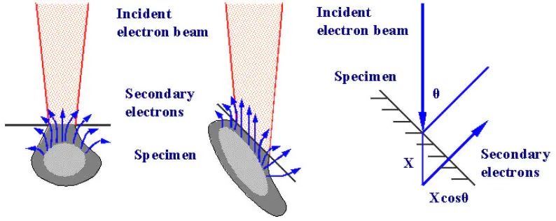 对形貌极敏感样品表面的凹凸起伏会直接影响二次电子的“逃逸效率”: