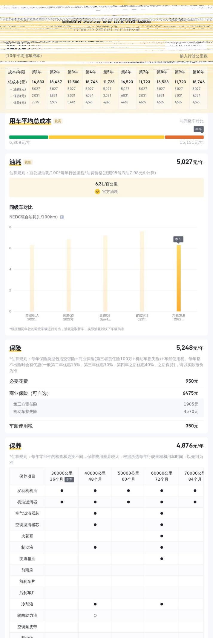 再来说说用车成本。除了油费,还需要考虑保险费、保养费、维修费等。奔驰的保养费用相对较高,这也是购买奔驰车型需要考虑的一个因素。根据估算,这辆GLB的年均用车成本大约在1.5万元左右。当然,这只是一个参考值,实际的用车成本会因个人用车情况而异。