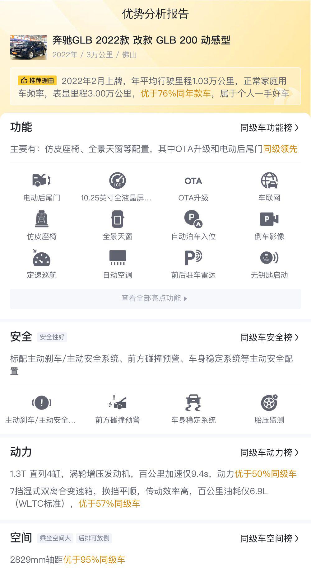 在接下来的篇幅中,我们将从更多维度来分析这辆二手奔驰GLB,例如市场行情、同款比价、保养建议等等,希望能给大家提供更全面的信息。