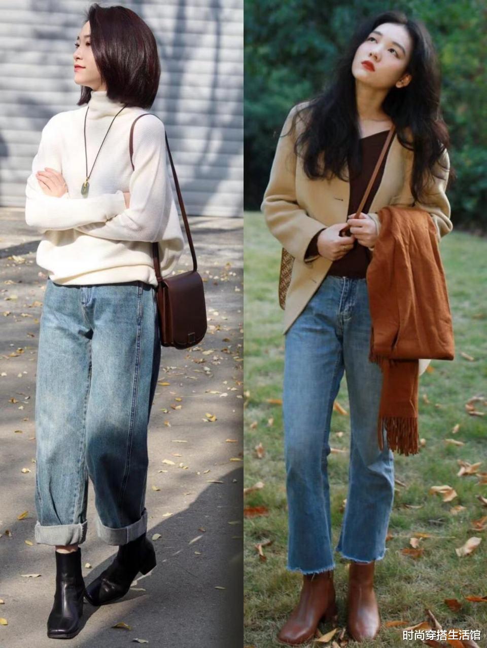 原因1.九分裤搭配短靴遮住脚踝,轻松保暖