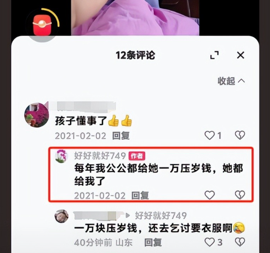 面对网上的压力,这位大姐后来跟大冰连线直播,想证明自己家里确实困难,不是来骗领的。结果倒好,网友们一翻她以前的视频,发现她公公每年给孩子压岁钱都有一万块,这不就自己打自己脸嘛。