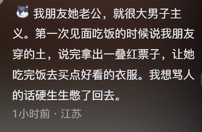 网友分享:有担当的“大男子主义”才受欢迎其实,很多网友也分享了自己身边正面例子。