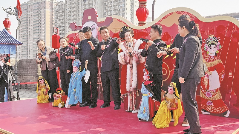 “合阳好物耀长安”西安城墙专场活动现场,合阳提线木偶戏精彩亮相。