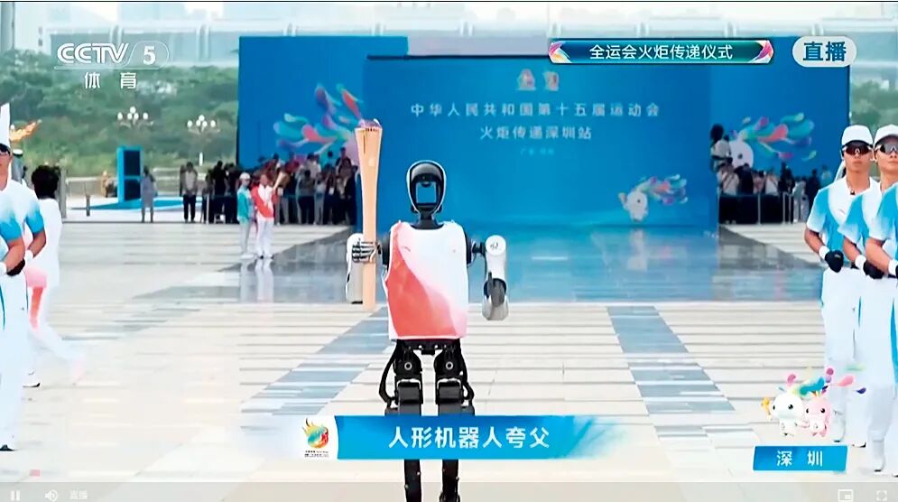龙华辖区企业研发的人形机器人“夸父”参与十五运会火炬传递。图/龙华区委宣传部