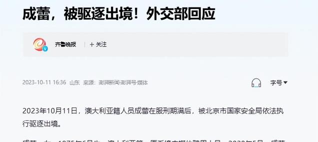 【1】齐鲁晚报2023-10-11《成蕾,被驱逐出境!外交部回应》