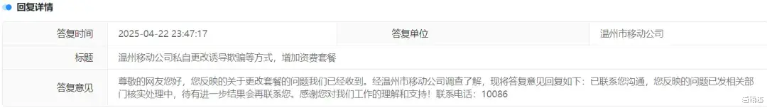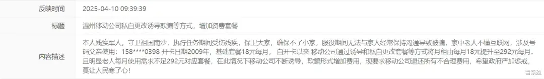 这几年,移动乱扣费的话题频频登上热搜,不少网友都在社交平台上吐槽过自己的 “踩坑” 经历 —— 有的莫名其妙被开通增值业务,有的套餐费用突然翻倍,投诉无门的憋屈让无数人直呼 “大冤种”。就在近日,温州市一位市民在民呼为我上发声,而他的遭遇,更是让人怒发冲冠!