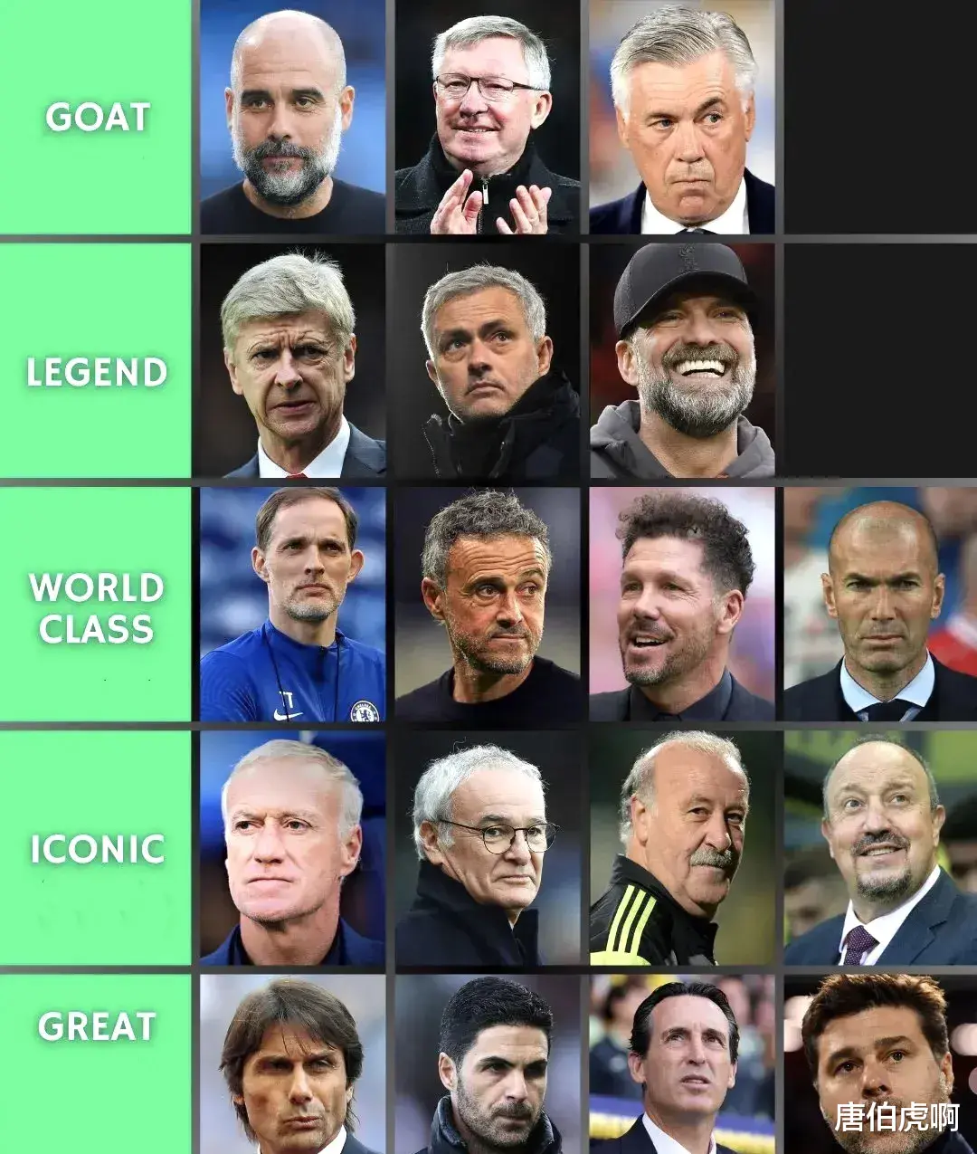 首先,瓜迪奥拉、安切洛蒂以及弗格森三人依然稳居第一序列。不管怎么有争议,这三位对于足球整体的推动作用不用赘述。即使曼城本赛季的连续输球一度让外界开始深深质疑西班牙教练的工作能力是否都是用巨额资金堆砌起来的成果,但是理性而言这种荒谬的言论显然就是纯粹的为了黑而黑的说法,曼城如今排名英超第五,在逐渐的调整中球队已经渐入佳境,相信到了赛季结束后这个排名应该是争三保四。