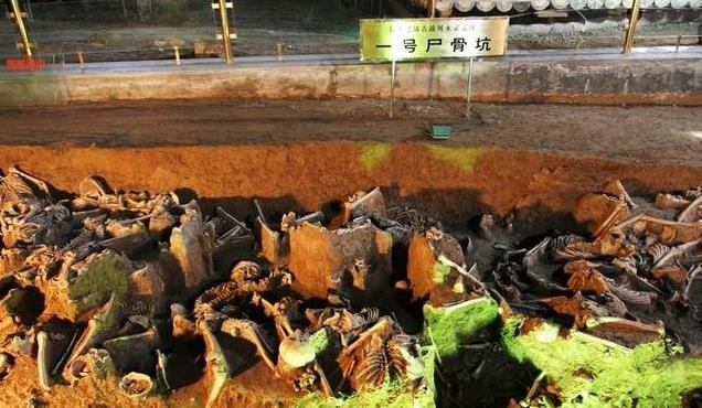 专家们对这个遗址进行了初步发掘,发现这是一个长11米、宽5米、深1.2米的长方形大坑,随即将其命名为"一号坑"。仅在这个坑里,就出土了130具完整的人体骨骼,还有数千件青铜兵器和生活用具。