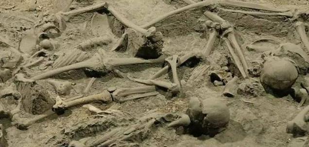 更让考古队震惊的是,通过碳14测定,这些遗骸的年代大约在公元前300年左右。专家们仔细观察骨骼,发现有14具骨骼上留有明显的钝器创伤,这些伤痕都发生在死亡时刻。