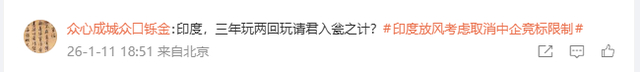 “印度,三年玩两回玩请君入瓮之计?”—— 网友“众心成城众口铄金”
