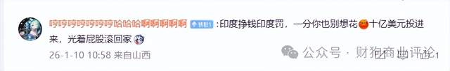 “印度挣钱印度罚,一分你也别想花,十亿美元投进来,光着屁股滚回家”—— 网友“哼哼哼哼哼哼哼哈哈哈啊啊啊啊啊”