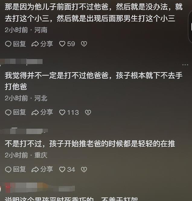 他们认为,孩子并不是一定要打小三,而是因为自己的体格受限,和父亲打那显然起不到作用,再者,退一步来说,那是他的亲生父亲,到底还是有些下不去手。