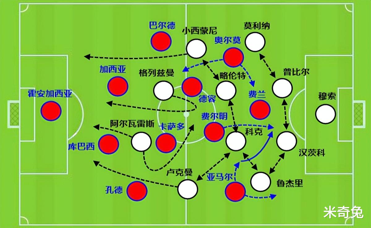只有巴萨更多地主导进攻,把马竞两个边前卫的站位给打回去,这样一来,马竞的反击质量就起不来,同时巴萨的边后卫也能获得更多的调整空间。