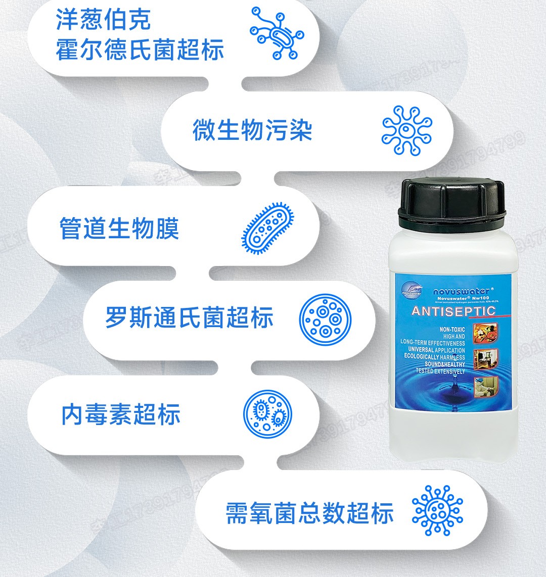 供水系统生物膜滋生:传统消毒剂(如含氯制剂)无法穿透细菌分泌的多糖基质,导致管道、储水箱内壁形成生物膜,成为微生物 “藏身之处”,常规冲洗难以清除;