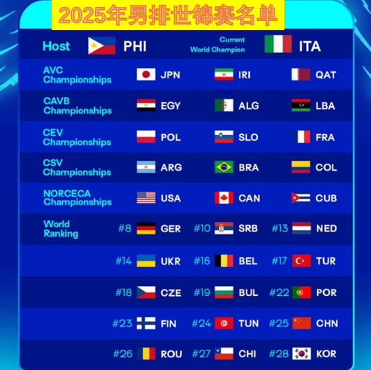名帅海宁带领中国男排取得12胜1负的骄人战绩,晋级明年的世锦赛,今晚,2025年世界男排锦标赛的抽签刚刚结束,此前已经确定东道主菲律宾位居第一签位进入A 组,世界排名第1到第7名的意大利、波兰、法国、美国、斯洛文尼亚、日本、巴西则分别落位B 到H 组,8支种子队之后,其余球队的抽签也取消了洲际限制,极端情况下亚洲的日本、伊朗、卡塔尔、中国有可能同组。但最终被分在第四档的中国男排,巴西、捷克、塞尔维亚同在H组。