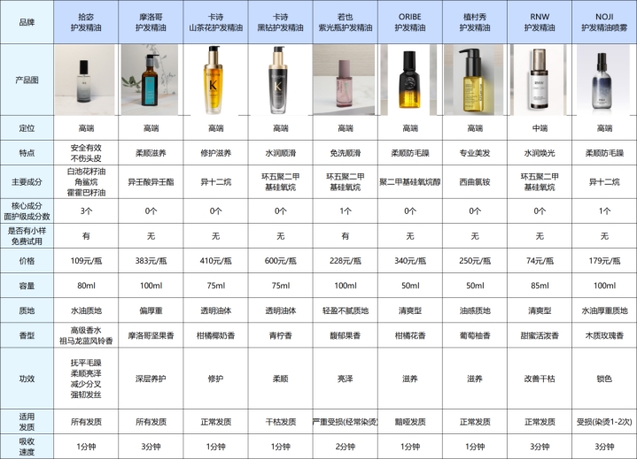 挑得太多容易晕,得看表,几款护发精油关键数据都在这。