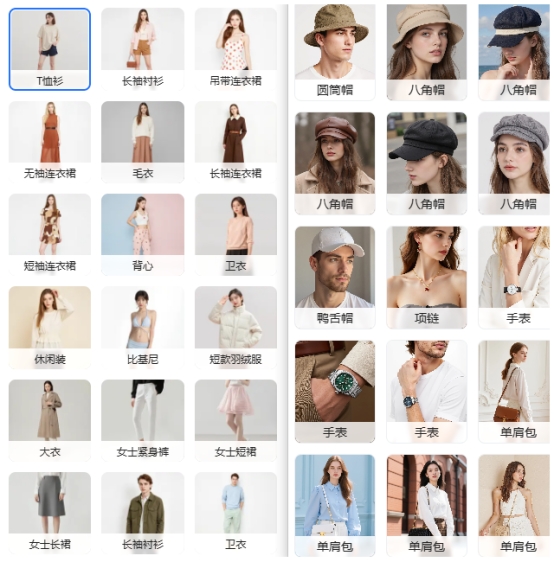 覆盖品类广:不仅是服装,鞋子、包包、帽子、眼镜、项链、耳环、腰带、丝巾等都可以实现 AI 模特功能!