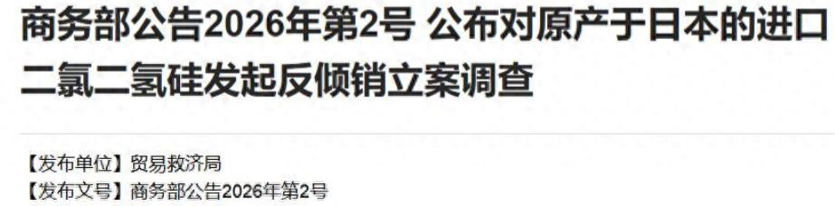 还没过两天,48小时都没到,商务部又来了一个,第二号公告,这次是反倾销,针对从日本进口的二氯二氢硅,半导体芯片的关键材料,外交部发言人毛宁出来说话了,为了国家安全,为了维护国家利益,符合国际义务,还敦促高市早苗撤回那些话。