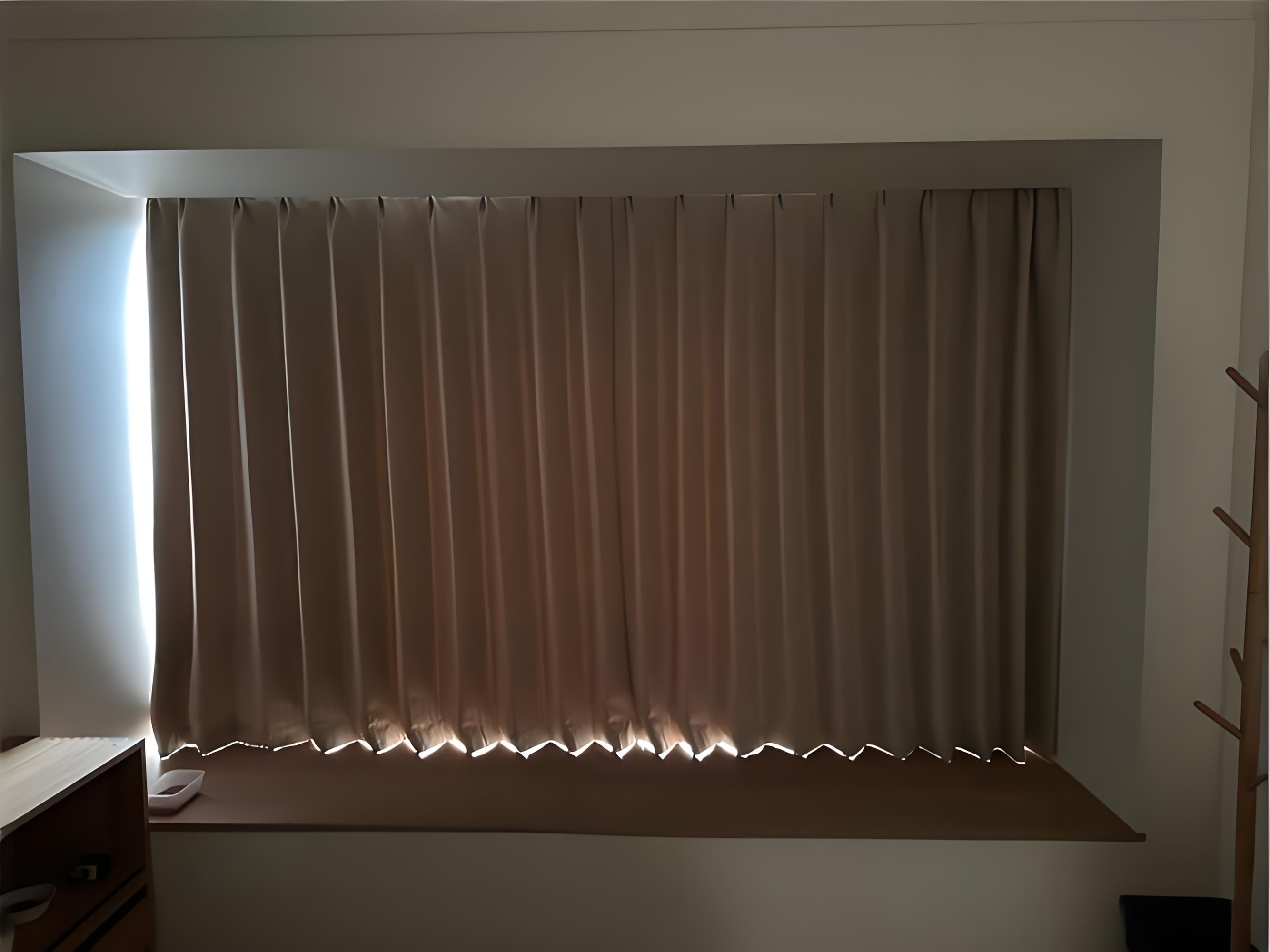 后来问了身边同样装了电动窗帘的朋友,才发现这不是个例,很多普通家装用户都踩过这个坑。传统电动窗帘的漏光,大多是滑车设计和闭合系统不到位,看似拉严了,实则到处都是缝隙,想要实现飘窗窗帘全遮光,简直难如登天。