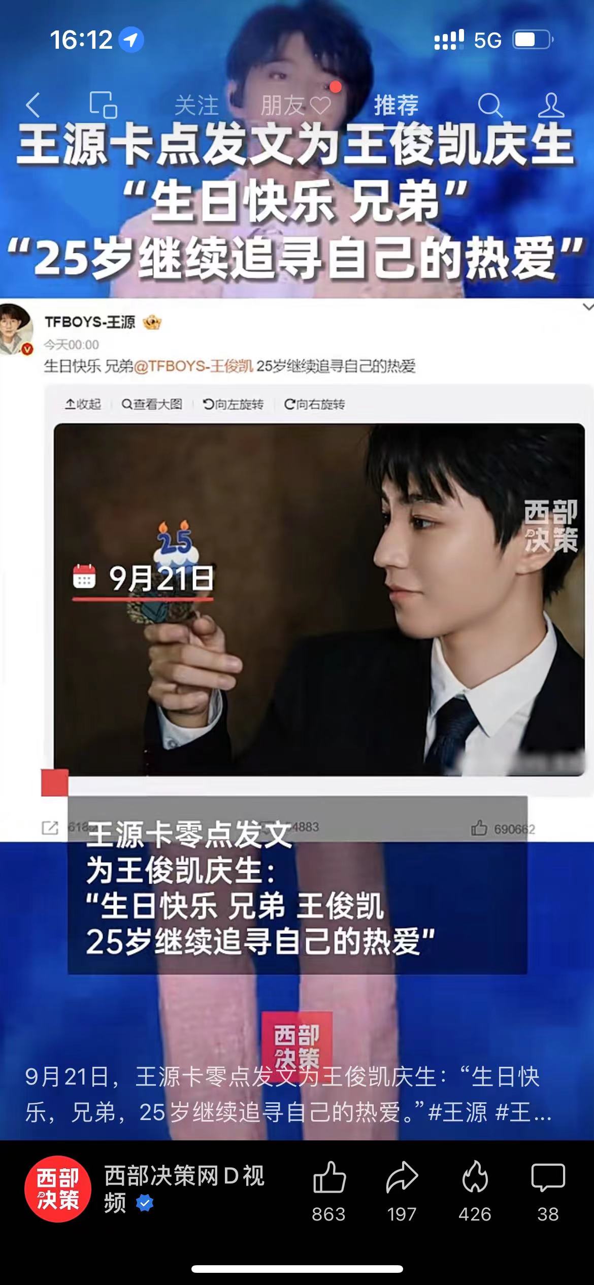 王源深夜卡点,为王俊凯25岁生日深情送祝福,引爆网络!