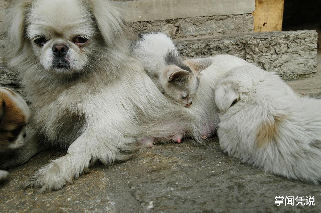护犊子的妈妈点点第一窝生的宝宝里,有一只叫小虎,很淘气。