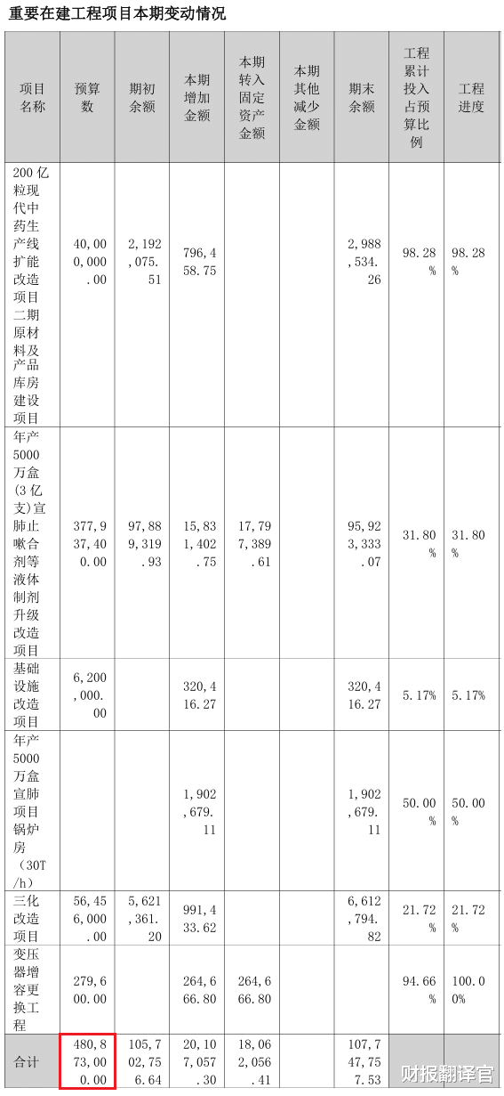 目前,公司有5个医药生产项目正在建设中,而这些在建项目的预计投资总额竟然超过4.8亿人民币。