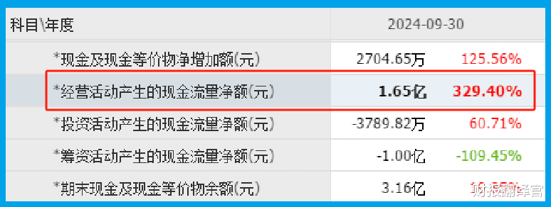 2024年第三季度,公司的净利润虽然有2,477万元,但是同期这家企业因销售药品而实际收到的现金净额竟然高达1.65亿元,同比大幅增长了329%。