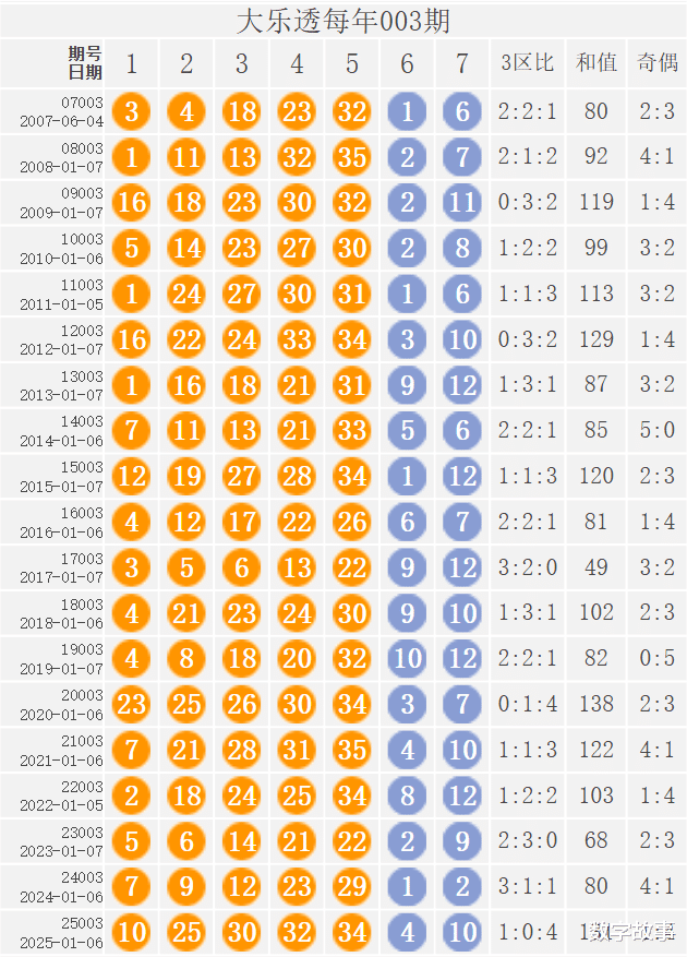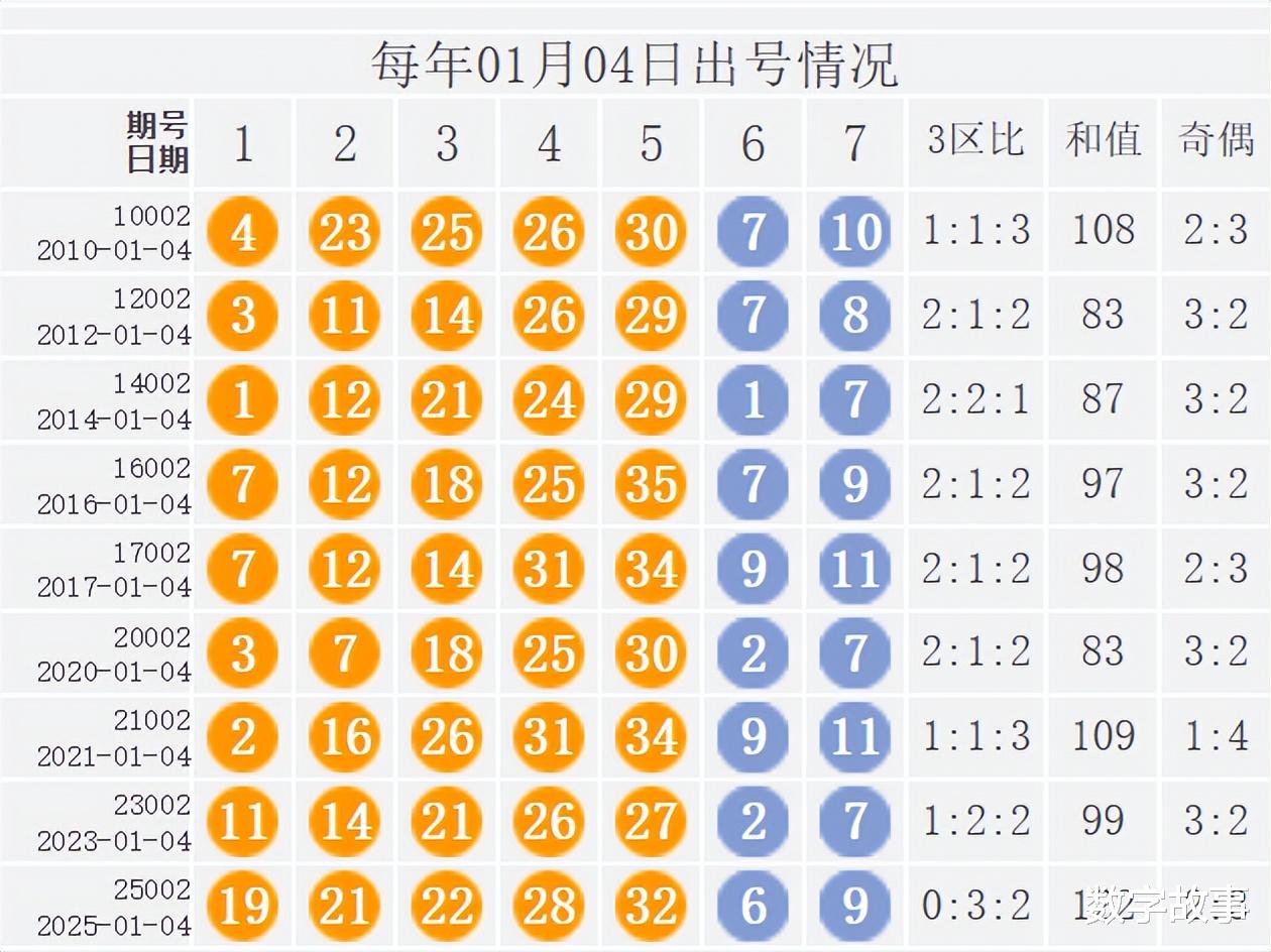 【其他历史数据查询统计】大乐透历史上的今天2026-01-04 星期日 大乐透不开奖每年01月04日出号情况: